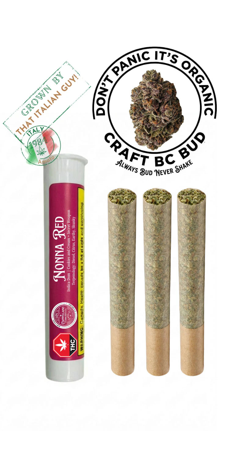 Nonna Red is a vibrant craft cultivar delivering ripe red fruit and bright berry notes with a smooth, lasting finish. Grown in organic living soil and cold-cured to preserve terpene expression, it offers a rich and balanced smoking experience.