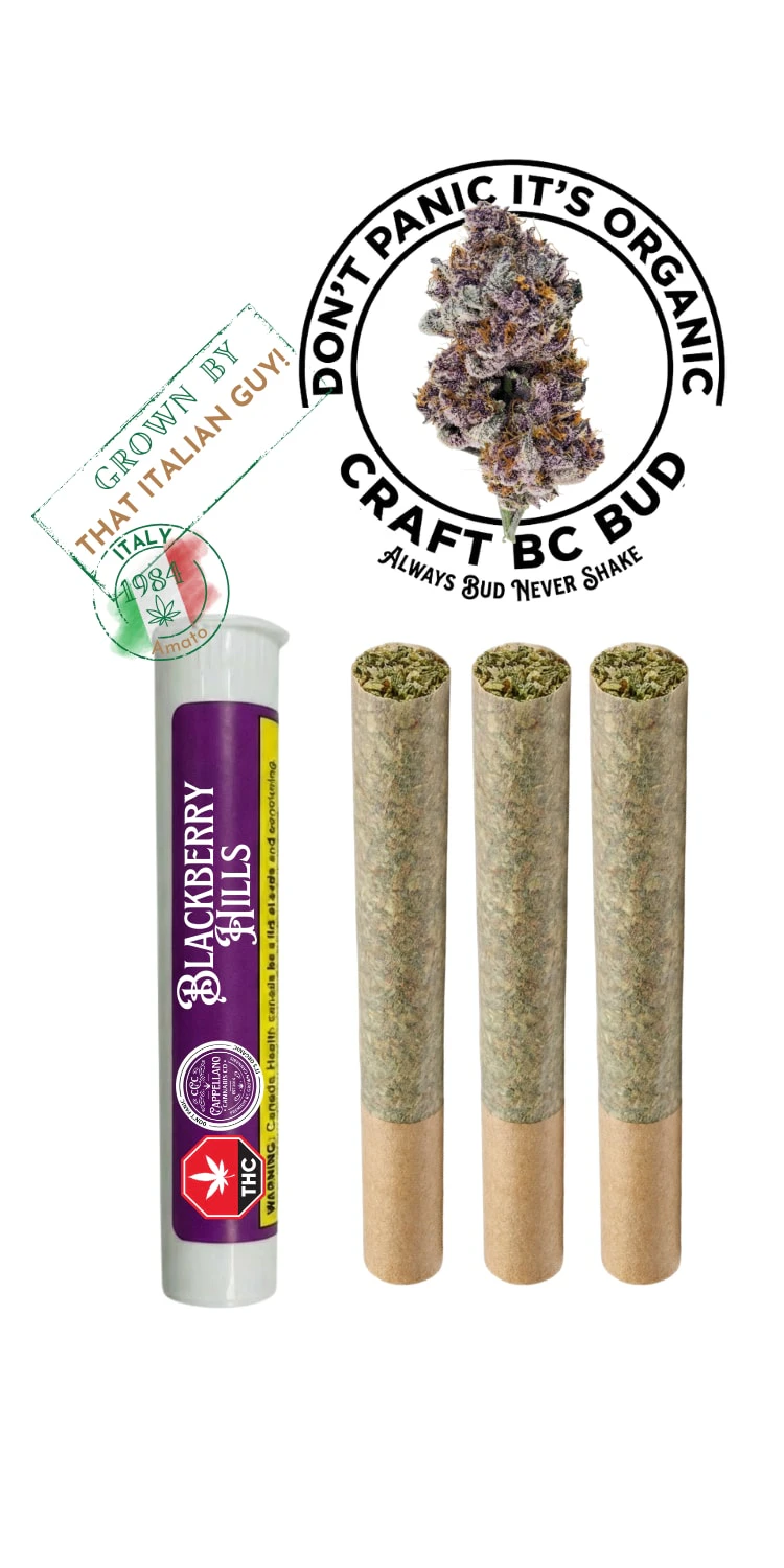 Organic living soil pre-roll featuring Blackberry Hills, a rich berry-forward cultivar grown indoors using LSO methods.