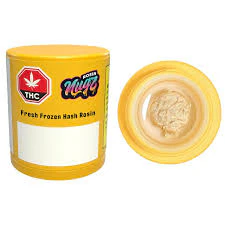Nugz Fresh Frozen Hash Rosin (FFHR) is derived from single source indoor-grown genetics and frozen at harvest to preserve the flowers' natural terpene profile, flavours, and aromas. FFHR is made by sieving frozen premium grade cannabis flower through 159m to 45m wash bags in ice water to produce a bubble hash that is then gently heated and pressed into a honey-like rosin. Nugz FFHR is offered in rotating single-source genetics drawn from their rare genetics' library. Best stored in the fridge and brought to room temperature 10 minutes before using.